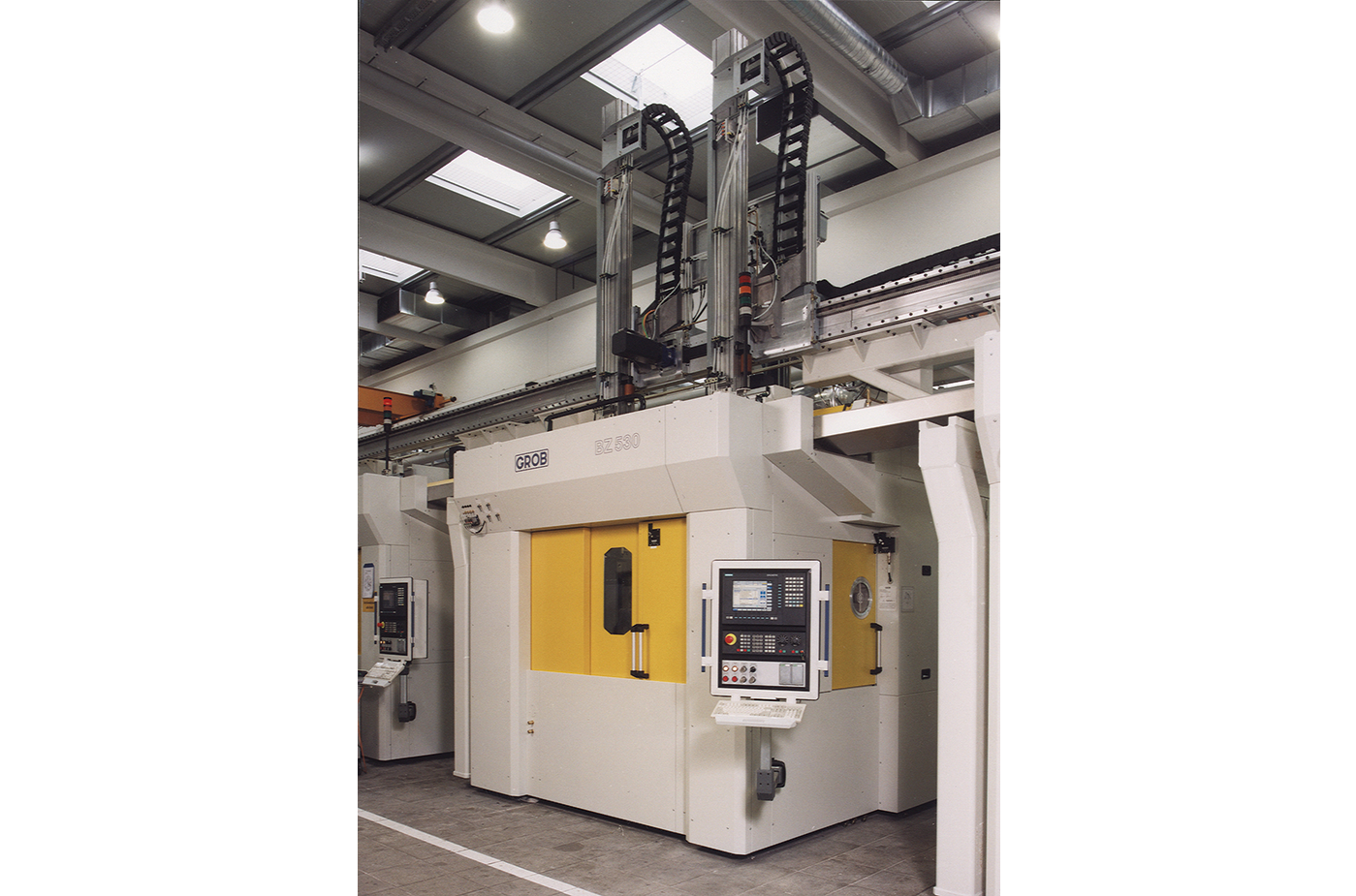 • Einführung des ersten zweispindligen Bearbeitungszentrums BZ520 in Form einer für Nass- und Trockenbearbeitung geeigneten Pinolenmaschine